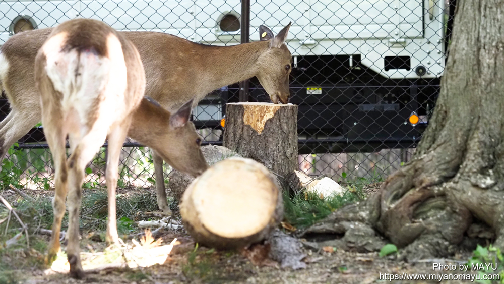 円山動物園のエゾシカは、今年(2024年)は2月3日にメスの芽(メイ)が推定20歳で亡くなり、現在3頭で過ごしています。