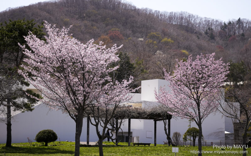エゾシカオオカミ舎周辺のエゾヤマザクラが、あっという間に満開です。