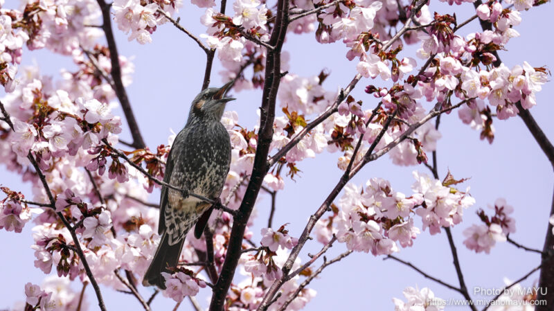 桜の木にやってきたヒヨドリ。