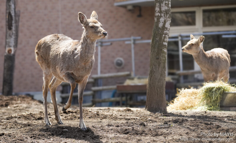 すると鳴いていたのは、エゾシカのメス「アマンダ」(写真左)。