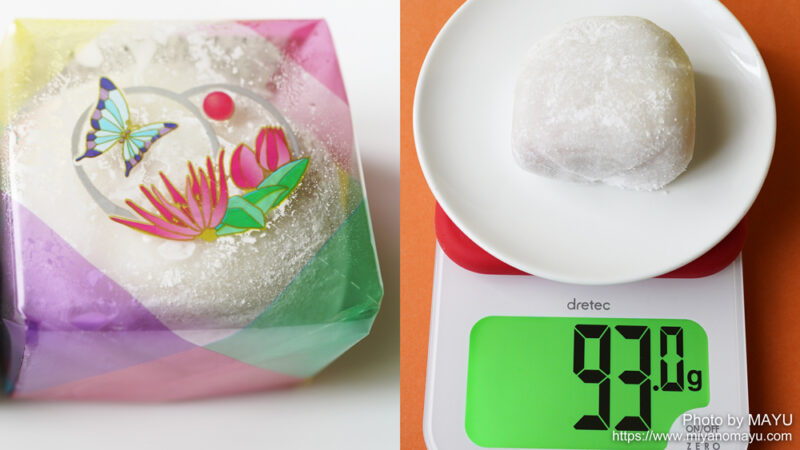 ぽっちりをイメージしているだけあり包装もカラフル。中にはフルーツがたくさん入っているので、少し重めの1個93.0g。