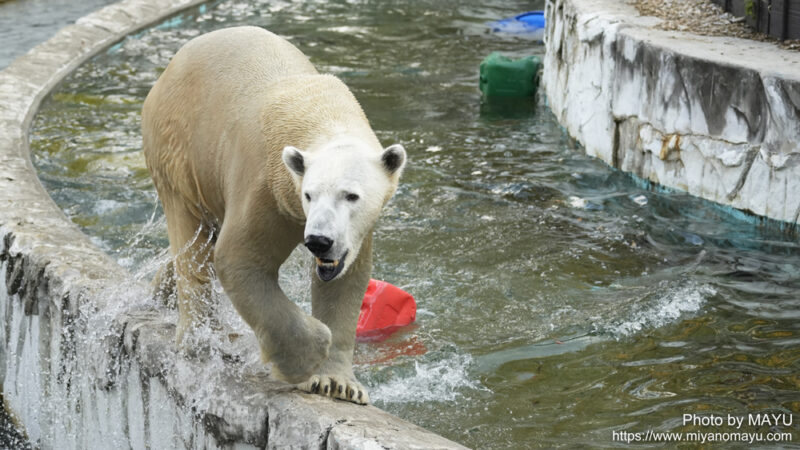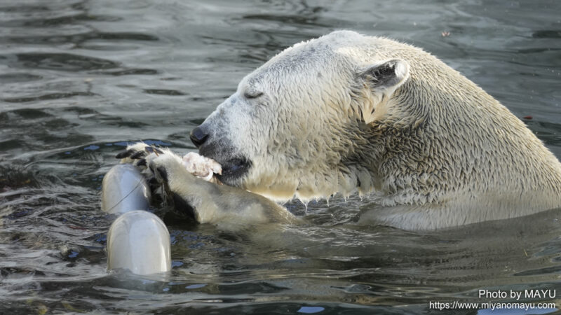 フィーダーからの取り出し方には、ホッキョクグマそれぞれの個性があり、それを知ることが出来るのは嬉しい限り。ホッキョクグマの知能はやはり高いです。