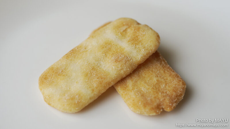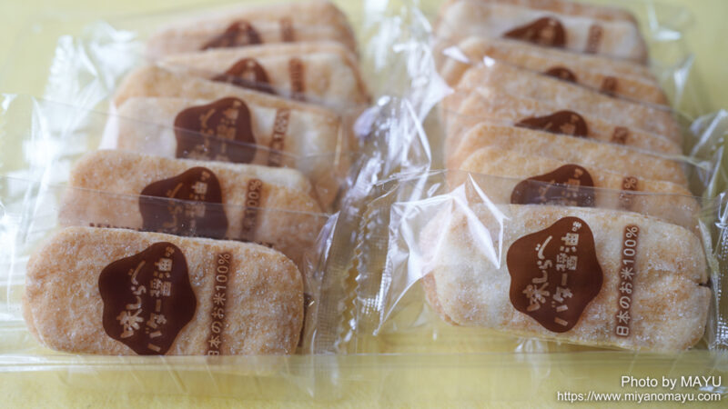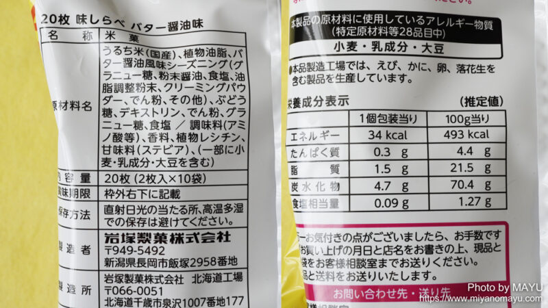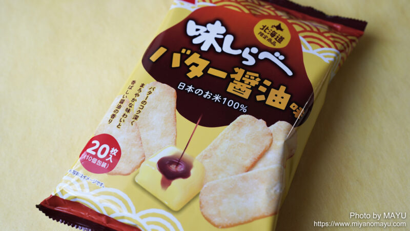 100%日本のお米を使って作られたおせんべいで、バター醤油味のシーズニングで味付けされています。