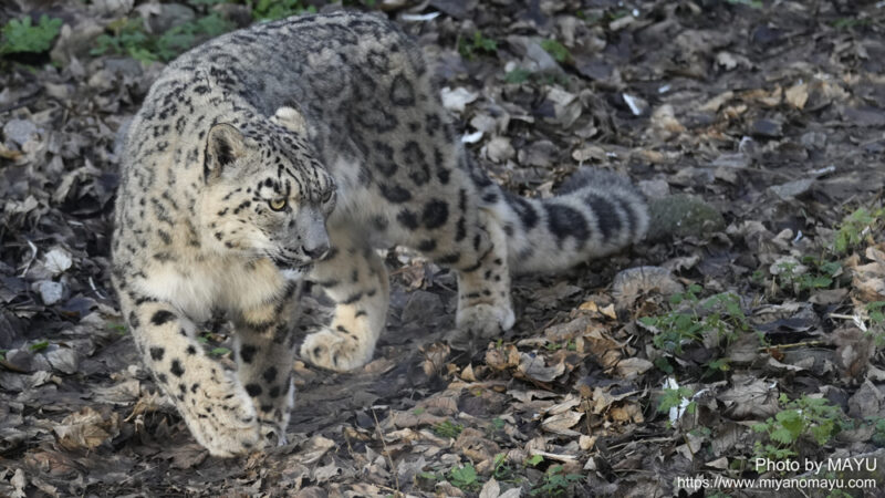 ユキヒョウ舎は、ホッキョクグマ舎のすぐ隣。いろいろな国の園館のユキヒョウ舎を見て回り、初めて天井のないユキヒョウ舎に辿り着きました。もちろん「高さのある柵」「返し」「電気柵」があります。どこを探しても「個体名」はないようで、愛称はわからず。繁殖期ということもあり、2頭は鳴き合い、檻越しに近づいたりしていました。屋内外は出入り自由なので、観られない時間も多い。放飼場はとても広く、ほぼ岩場。ユキヒョウが動いていれば探しやすいが、動いていなければ探すのに難儀という体験が出来ます。