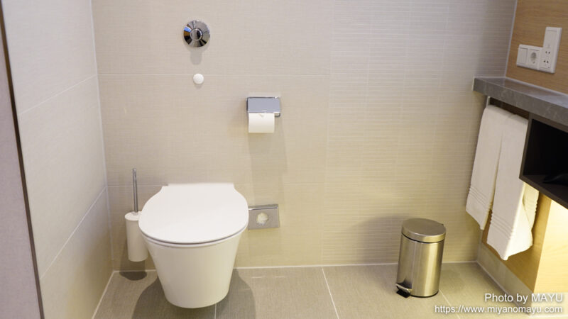 設備は申し分ないのですが、トイレットペーパーの位置が真後ろというところが・・?