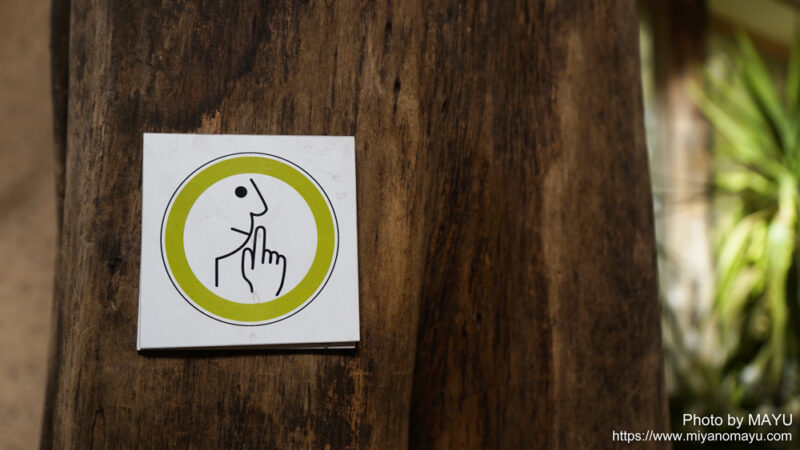 類人猿の獣舎には、「静かに」のマークがある動物園が多い。
