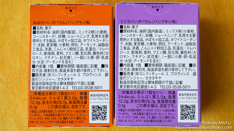 ハロウィンの2種類は1個あたり244kcal。栗ぬきパンダバウムは1個あたり248kcal。