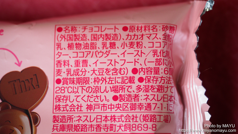 最近のキットカットの大袋は紙製になっていましたが、このハートフルベアはプラ製の袋ですね。