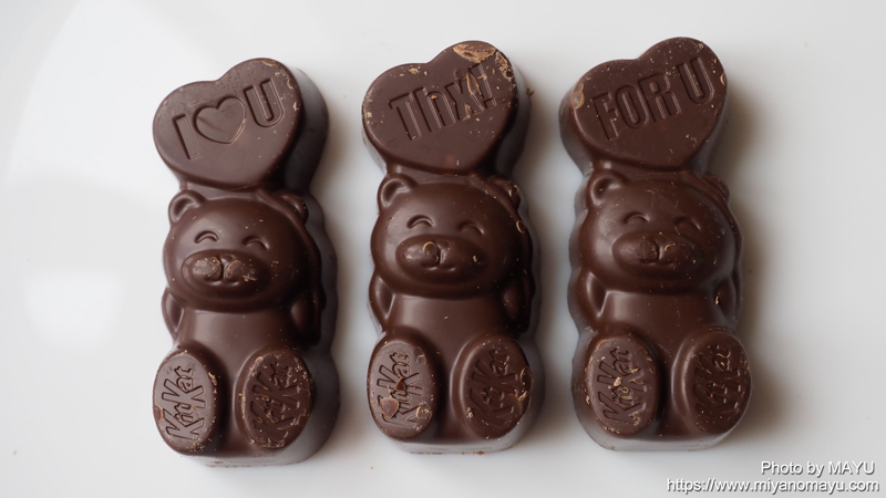 製造はネスレ日本株式会社(姫路工場)。海外のキットカットでは、いろいろなキャラクター型のものも販売されていたそうで、このクマ型は日本限定。いつか海外ものも見てみたいですね。
