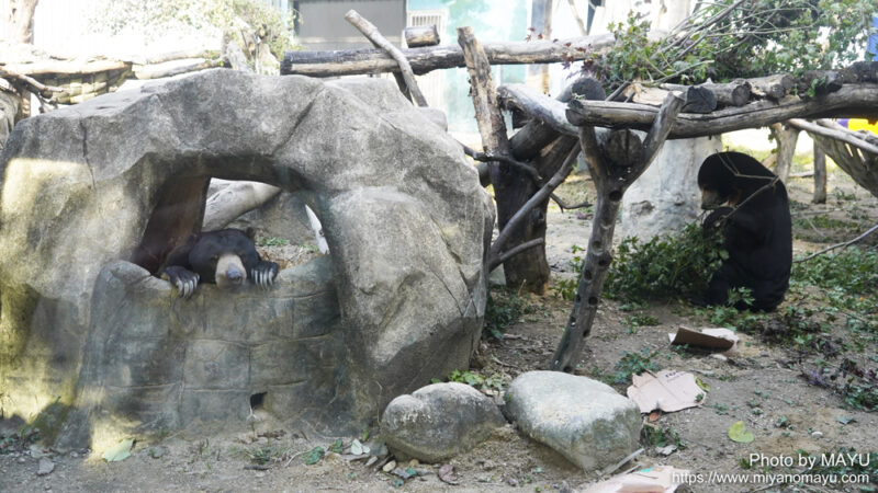 左・・洞窟から顔を覗かせているのは、コマ(オス/22歳) 2003年9月5日生まれ