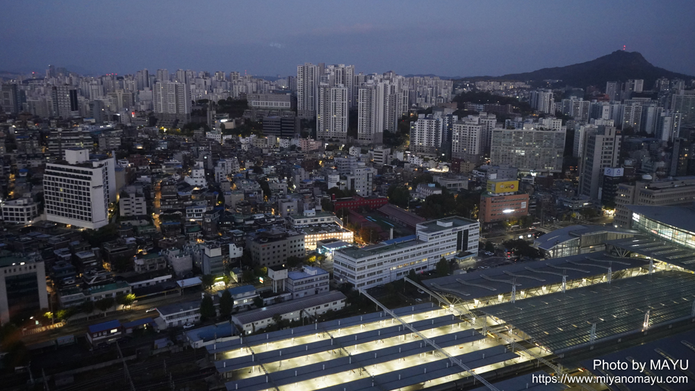 おはようございます。韓国旅行2日目の朝です。明け方5時過ぎくらいから始発が動き出し、街が目覚めていく感じです。右方面に見えるのは鞍山(안산/アンサン)標高295メートル。札幌市の大倉山は標高307メートルなので、それよりもやや低く、ハイキングや散歩コースで気軽に登ることが出来る山だそうです。