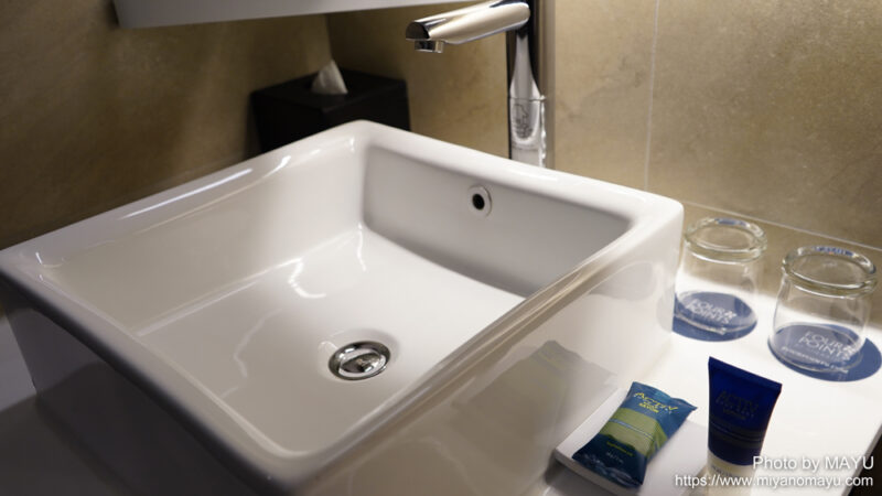 アメニティグッズは、石鹸、ボディローション、コットン綿棒、シャワーキャップ、サニタリーバッグがありました。歯ブラシはありません。