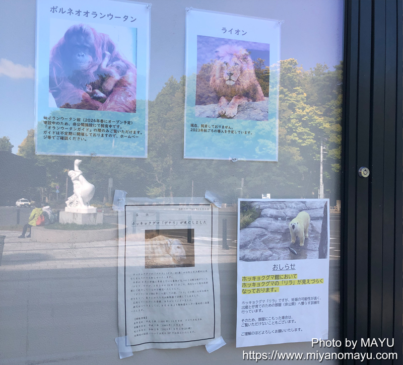 2022年2月13日にリッキーが亡くなってから2023年10月10日までずっと、リッキーの紹介や訃報のお知らせが貼られたままで、リッキーの面影を感じながらこの獣舎の前を通っていましたが、いよいよ剥がされる時が来ました。再び感謝の気持ちで、この空間を眺めていました。
