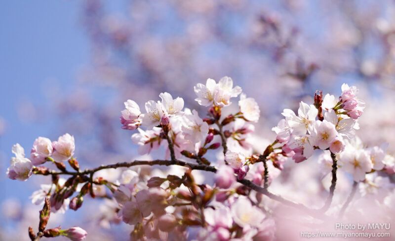 別の角度から。満開になったら散るのも早いです。