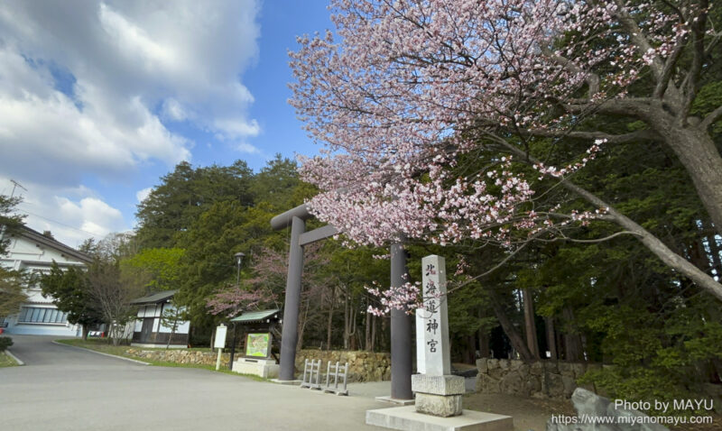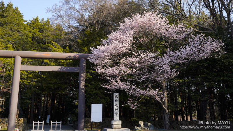 4月19日の北海道神宮。第三鳥居の桜は、例年この周辺では一番早く満開となっている桜だと思います。今朝は青空でタイミングも良かったです。