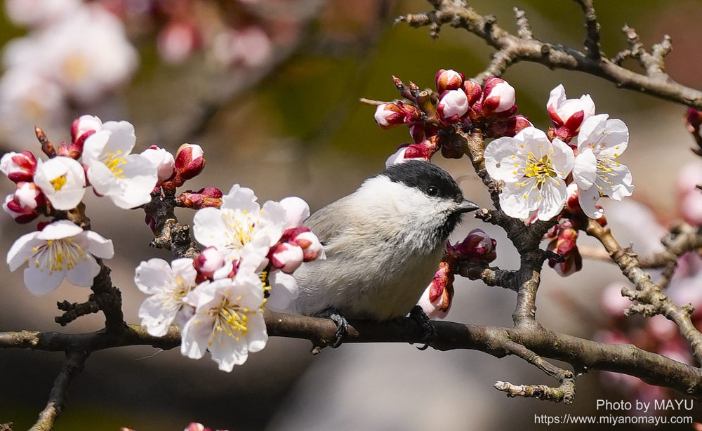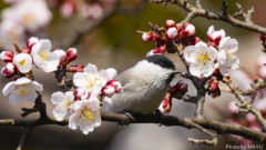 北海道神宮の梅の木に現れたハシブトガラ。