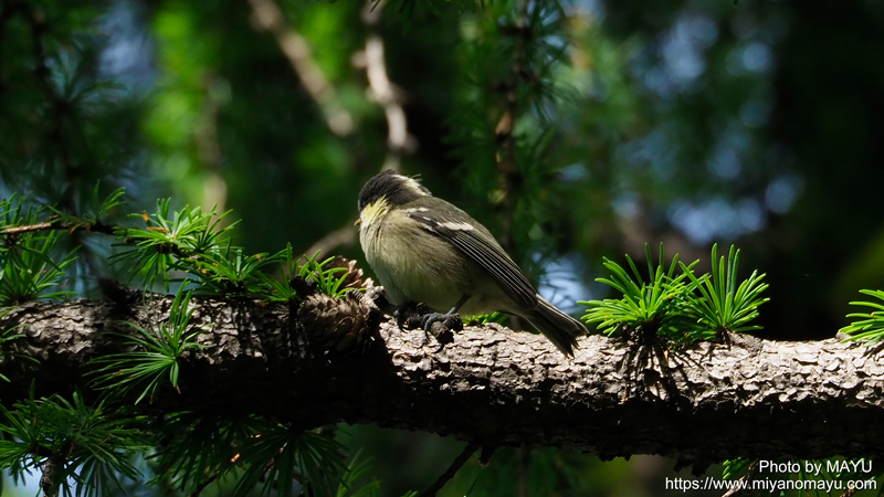 円山公園を抜ける途中で、カラマツにカラの群れがやってきていました。ヤマガラ、シジュウカラ、ヒガラ、中にはスズメも混じっていましたね。しばらくそのカラマツの大木に滞在していたので、カメラを取り出し覗いてみると、ヒナがたくさんいました。少し大きくなっていましたが、明らかにヒナのくちばしで、可愛らしいです。