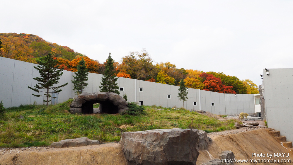 ホッキョクグマ館から見る紅葉。今年はリラの出産準備のため、11月1日から一部閉鎖されてしまうため、この景色が見られるのは10月31日までとなります。