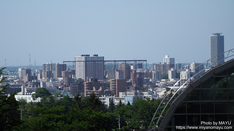 全国に現在36頭いるホッキョクグマのうち、オスは12頭、メスは24頭で、オスが少ない。36頭中デナリ・ララ家族は10頭など、国内の厳しい現状等を簡単に解説。最後はホッキョクグマ館屋上まで上り、札幌の景色を眺めてガイド終了となりました。