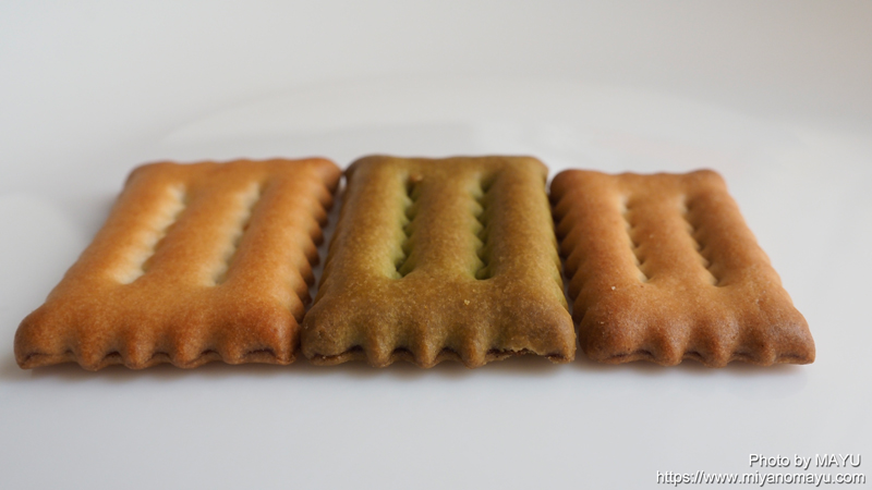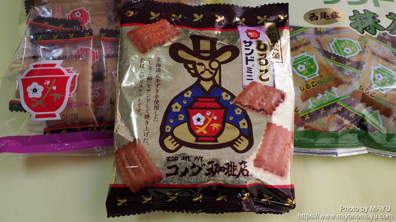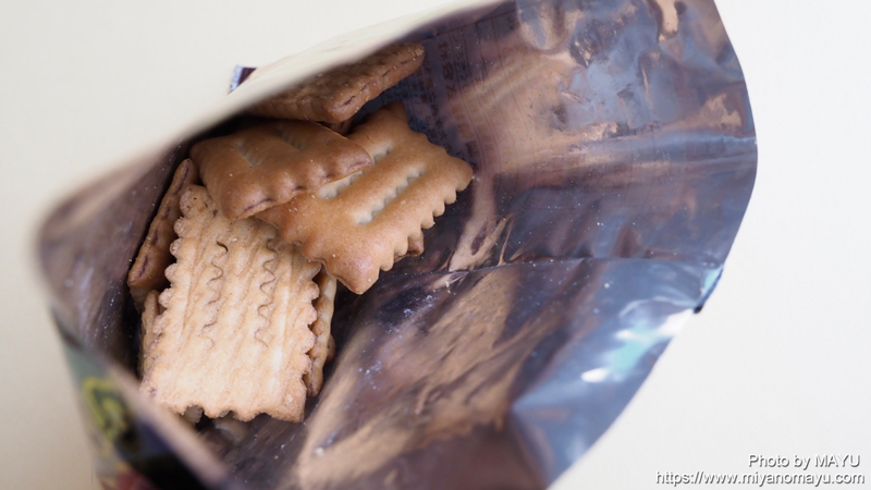 中央に小豆がサンドされた、少し固めの食感のビスケット。ミニは小さくて薄いので、食べやすいですね。だから食べすぎてしまいそうです。