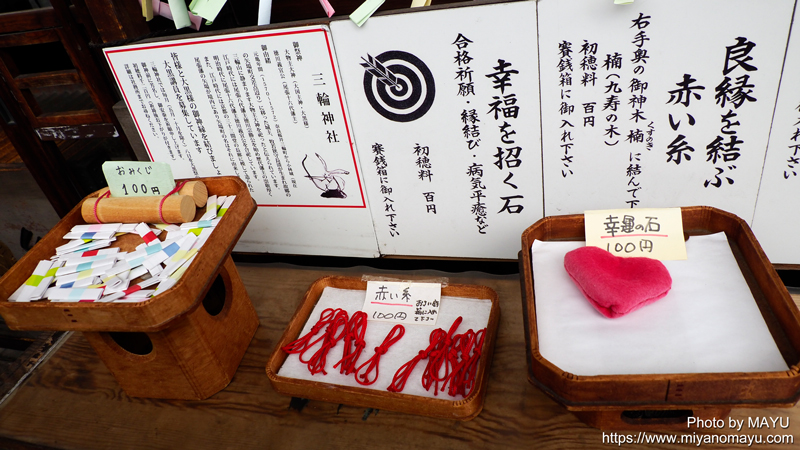 カラフルで画のタッチもいろいろ。三輪神社ならではの可愛らしい御朱印がたくさん用意されていました。