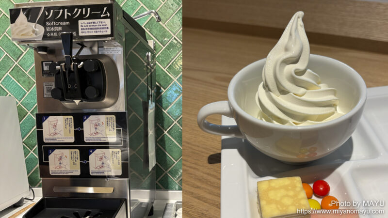 おすすめは、クロワッサンをトーストして、はちみつを少しかけて、ソフトクリームを添えれば、シロノワールの出来上がり♡ ラウンジでコメダ気分も味わえました。