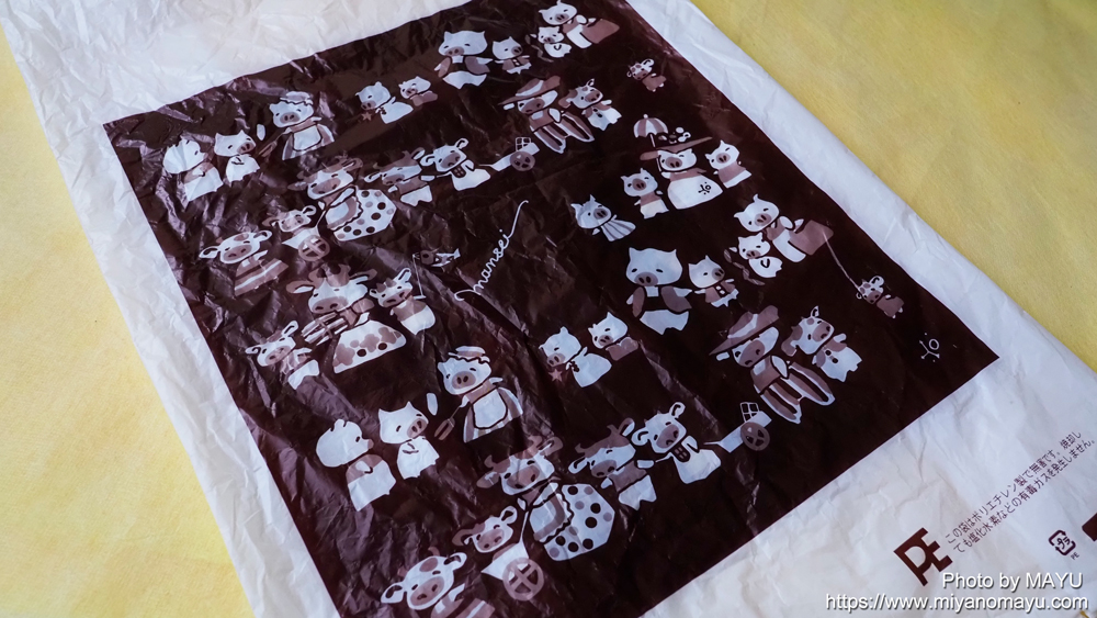 肉の万世のレジ袋にもイラストがたくさん描かれています。