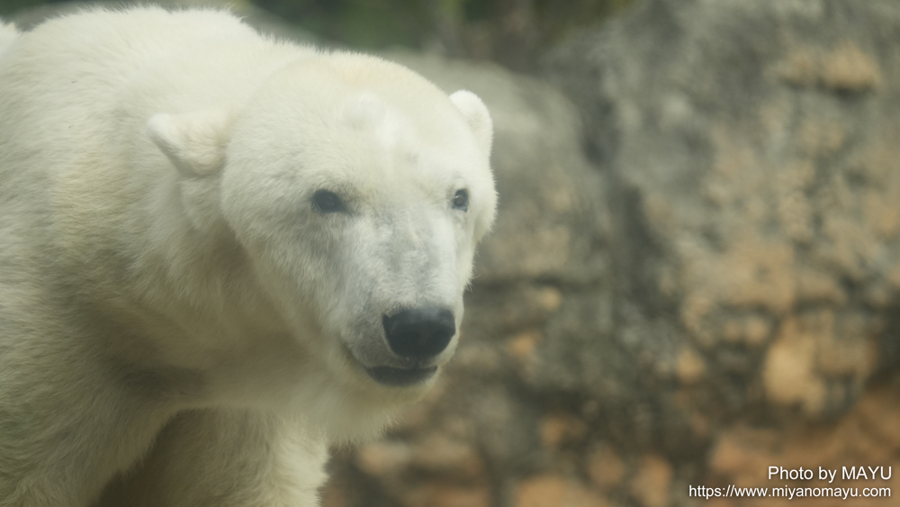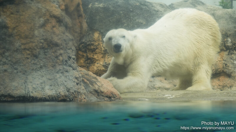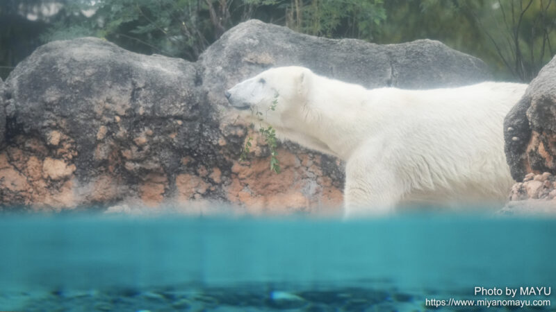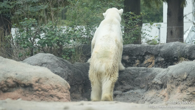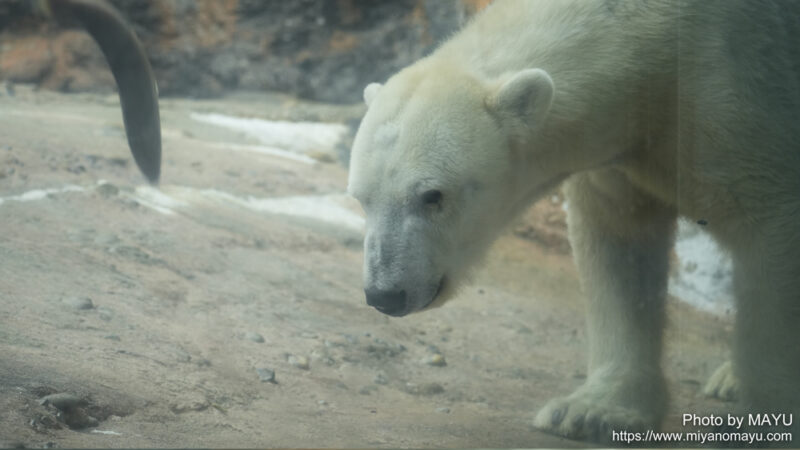 ホッキョクグマのクッキー(メス/32歳)の朝の様子です。