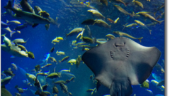 到着ゲートを抜ける前に上を確認。ホッキョクグマ「リラ」のお出迎えです。
