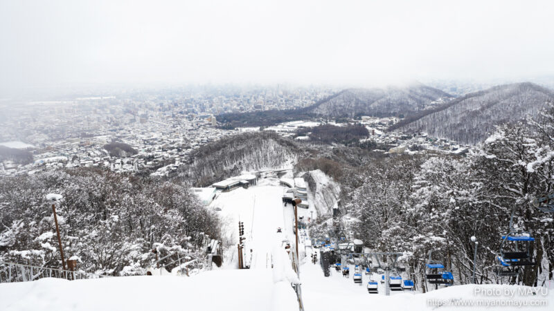 3月5日。展望台の頂上までリフトで上がり、札幌の街を見下ろすとこんな状態。前日にまとまった雪が降ったので、真っ白になっていました。