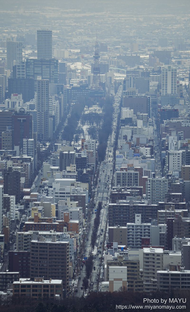 展望台から見下ろすと、札幌中心部まで見えます。(2026年3月5日)