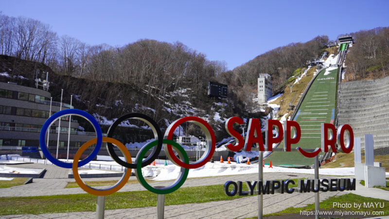 天気が良いの大倉山ジャンプ競技場まで足をのばしてみました。気温は6.7℃。山頂の雪もずいぶん溶けているようす。