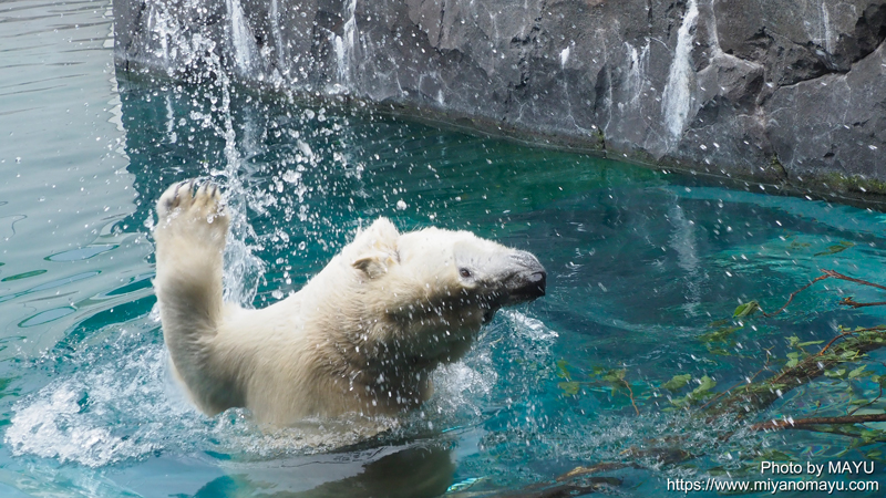 ホッキョクグマ館のヤナギランの、今年の見頃は7月中旬ですね。今日は、午後の屋外給餌の際に、大きなハルニレの枝をもらったリラ。どのタイミングで、どう攻めるのか? 気まぐれ要素も大きいので、毎回楽しみな行動観察です。