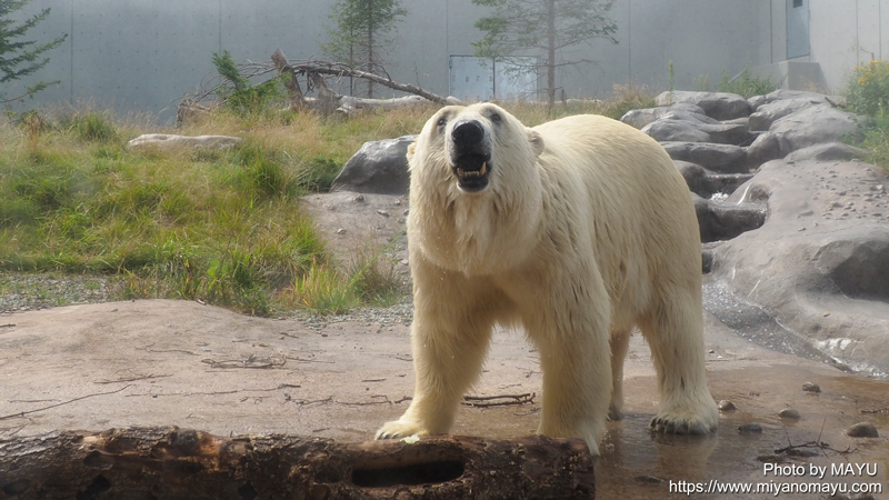 突然立ち上がったリラ。(立ち上がる時は大抵突然です(笑)) 何かを察知したのでしょう。しばらく、堀にせり出した岩の上で様子を伺っていましたが、その後まっすぐ屋内に向かいました。飼育員さんが屋内に入った事がわかったようです。
