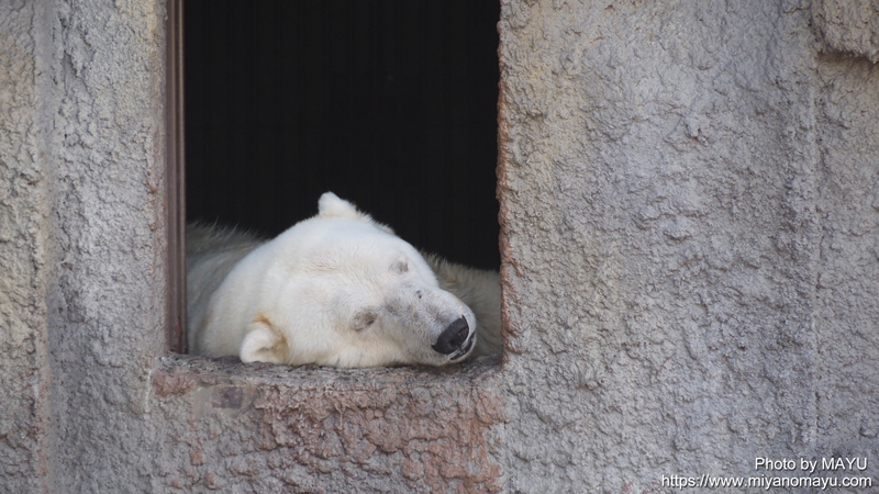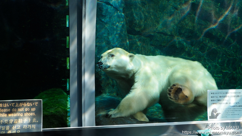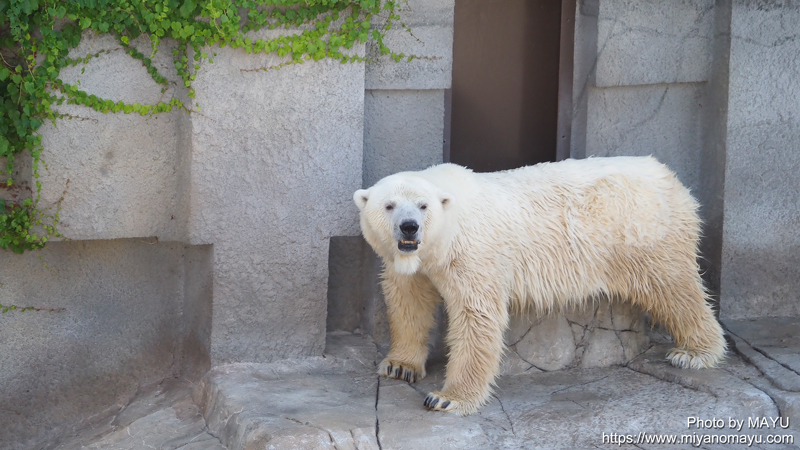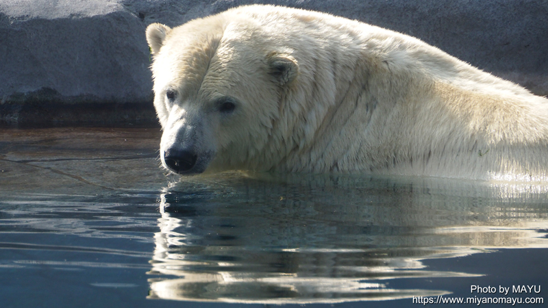 ホッキョクグマ館に到着すると、リラがちょうどプールに入るところでした。