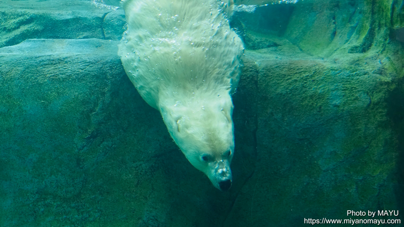 アザラシプールとの境を行ったり来たり。アザラシの動きを追いながら泳ぎます。