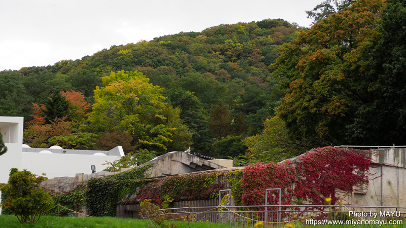 ララ邸の壁のツタは、毎年生い茂る一方で、少しずつ飼育員さんの手で刈られています。