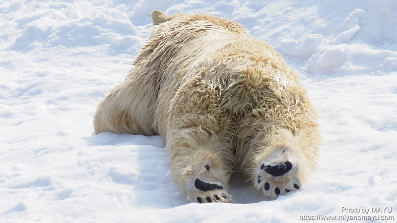 最高気温は6.1℃まで上がり、積もっている雪も少し溶けて、質が変わってきました。1月はとても寒かったので、暖かくなるのは嬉しいけれど、ホッキョクグマ館の雪が溶けていくのを見ると、寂しい気もします。