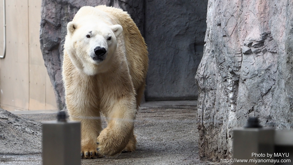 ホクトはいずれ、旧世界の熊館を経由し、通路を通ってホッキョクグマ館へと移動していくのでしょう。ロシアのペルミ動物園→姫路市立動物園→旭山動物園→円山動物園という移動歴を持つホクト。デナリも一度、釧路出張経験者。ホクトの弟ゴーゴも、天王寺→アドベン→天王寺→ズーラシアという移動歴。イコロとキロルも頑張ってます。オスたちにも感謝です。