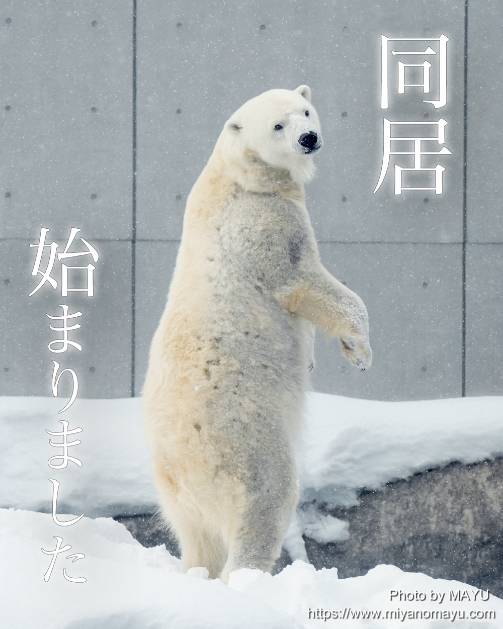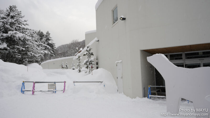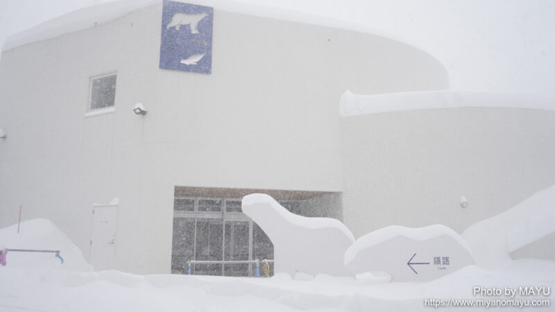 記録的な大雪となったこの日も、除雪作業のためスタートが少し遅れつつも、予定通り同居が行われる。ホッキョクグマ館前の朝の積雪量は45cmでした。