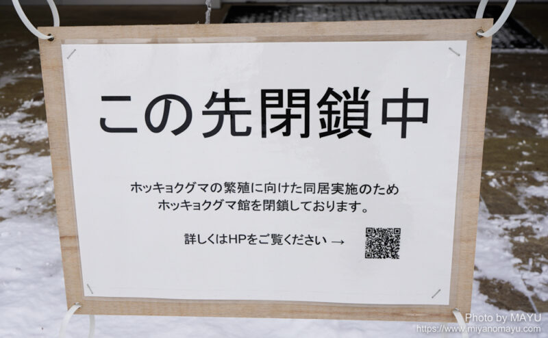 1月21日(水)からは、「ホッキョクグマ館 一時閉鎖のお知らせ」が入園ゲートに掲示されました。