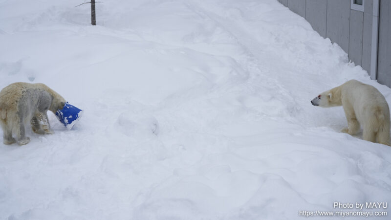 他のホッキョクグマと暮らしていると小さな出来事がいろいろ積み重なっていきます。それこそがライトの経験値となり、将来に繋がっているのだと信じ、見守り続けたいと思います。