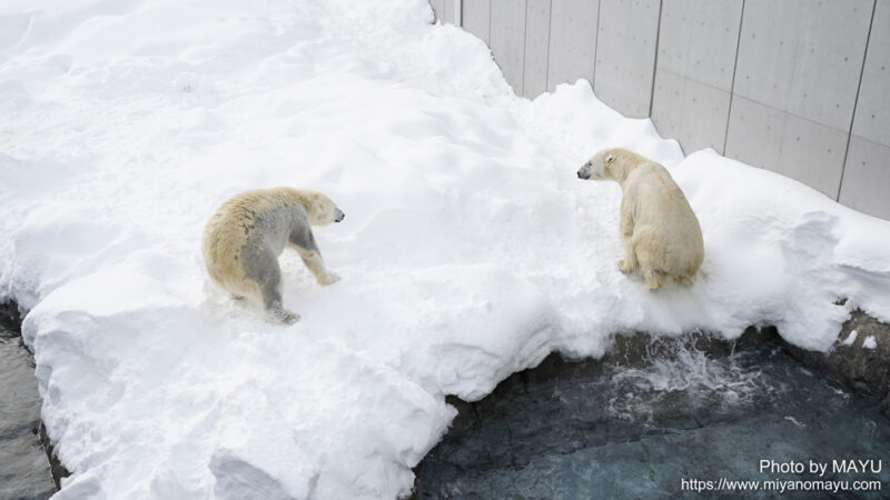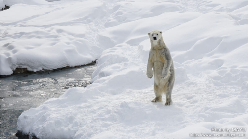 ここは2階アザラシプール前の雪。珍しいくらいの積雪状況です。