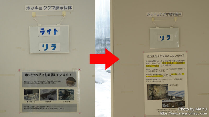 同居期間中は左のサインの掲示でしたが、今日からは右の掲示に戻りました。