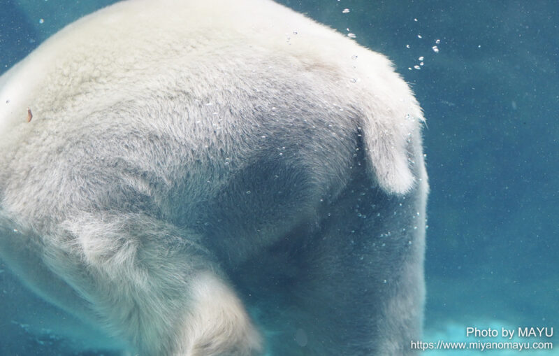 ズーラシアでは、同じ場所をぐるぐる遊泳する姿を見ることがよくあり、ゴーゴの後頭部をよく眺めていました。