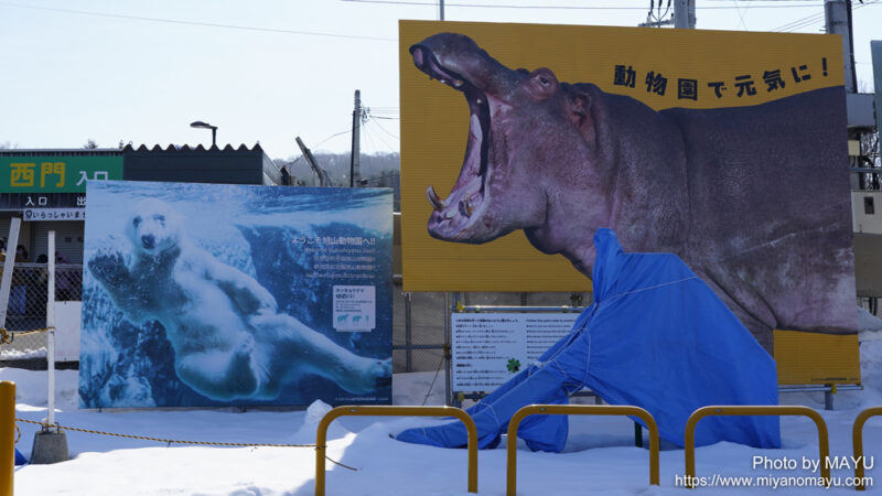 こちらは西門入口。ホクトとピリカの第1子ゆめの特大パネルが現在も張られています。