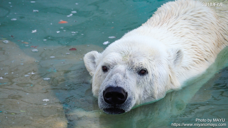 私が最近訪問したのは、昨年(2019年)7月19日。その時には、「1990年12月(推定)カナダ生まれ」という個体表示がありました。サスカッチは野生個体だと聞いています。ただ、動物園の訃報記事を読むと「1990年11月に来園」とあります。1989年の年末〜1990年の年始に生まれたのなら、今30歳ということでしょうか。いずれにせよ、国内のオスのホッキョクグマでは、最高齢でした。