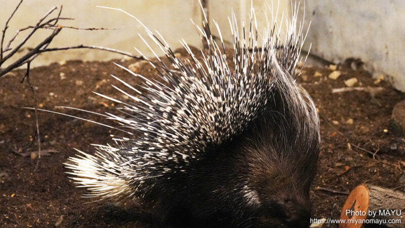 ヤマアラシは齧歯目。他の齧歯目と同様、前歯が伸び続けるそうなので、いつかその歯を見てみたいなあと思っています。