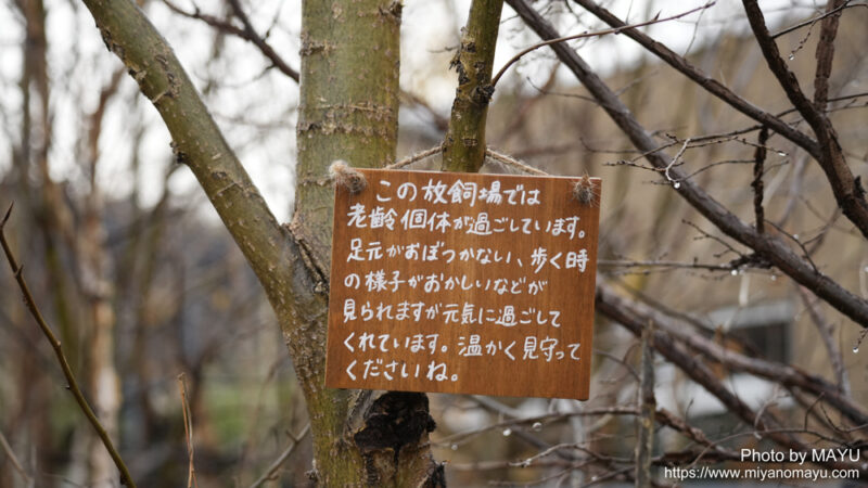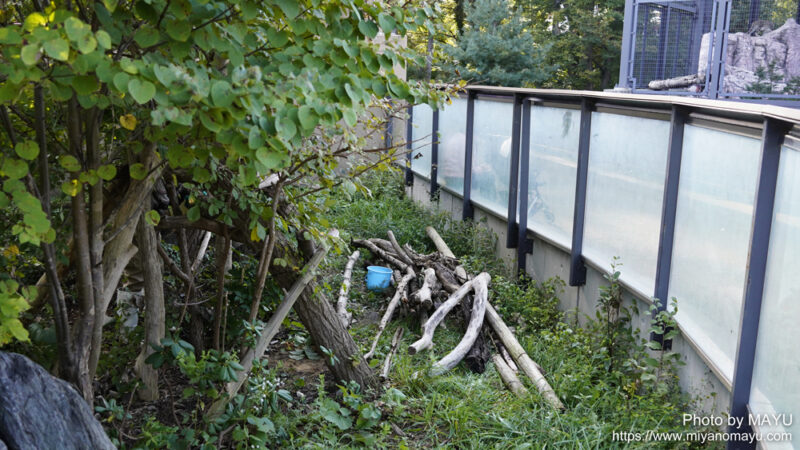 ユキヒョウ舎側の屋外展示場はエイタの場所となり、写真のような看板が下げられています。