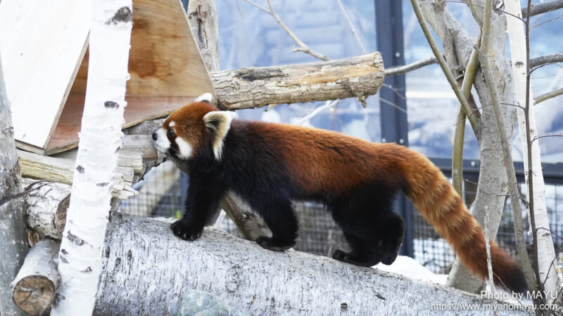 2026年3月16日(月)に、よこはま動物園ズーラシアから札幌市円山動物園に来園した、シセンレッサーパンダのヒナギク(メス/3歳)は、一般公開に向け現在馴致中。到着翌日(3月17日)の開園前には、すでに屋外放飼場デビューも果たし、今週は開園時間中にも不定時に訓練が行われており、今日はようやくそのタイミングに遭遇出来ました。